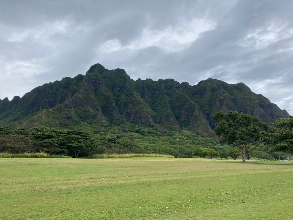 Next stop is Kualoa Beach Park. We have the ocean on one side, with an island called Chinaman’s Hat, while inland is the film location for Jurassic Park.