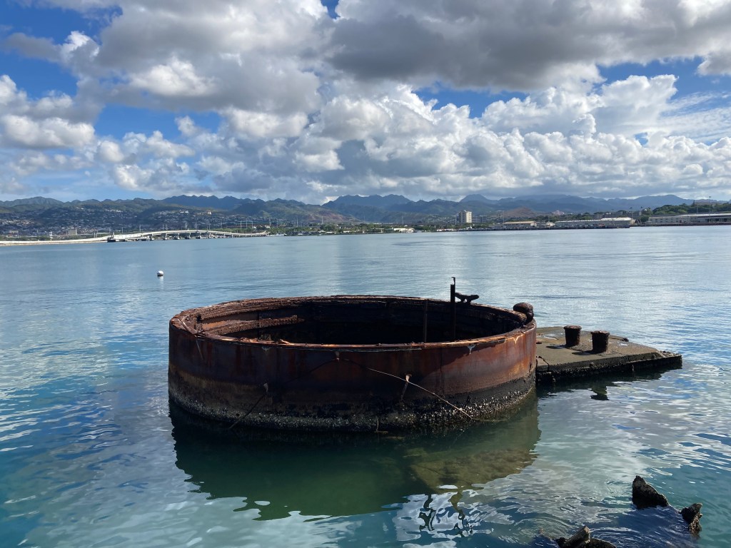 We take a wander round the harbour and then tour the Visitor Center, which tells the story of the attack, which took place almost exactly 80 years earlier. The Americans had moved dozens of ships and hundreds of aircraft from the mainland to Hawaii (so basically half way to Japan), yet were totally unprepared when the Japanese turned up and attacked. In just two hours, most of the boats were sunk and most of the aircraft destroyed with the loss of thousands of lives. 900 men died on board the USS Arizona alone, which exploded and sank. It still sits in the harbour, together with its crew.