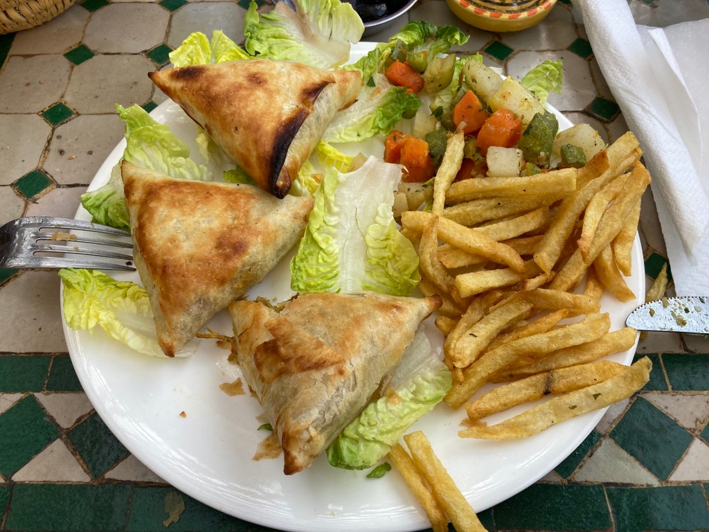 We opt again for the set 3 course meal. Today, as it’s technically still lunch time, 3 courses is only 100 dirham (around £8). The old man goes for another tagine, while I have briwats, which are similar to Indian samosas, but with a different spice combination.