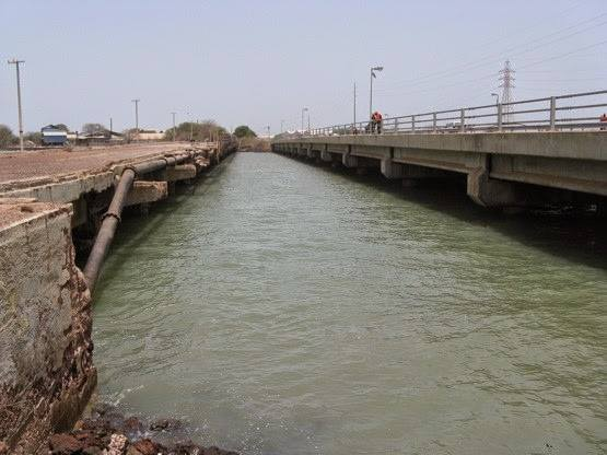 Built in 1986, the 210 metre long Denton Bridge, which spans the Tanbi Wetland Complex, is the only road connecting Banjul to the mainland. Once we are through the checkpoint, we continue along the highway until we reach our first destination; Arch 22.