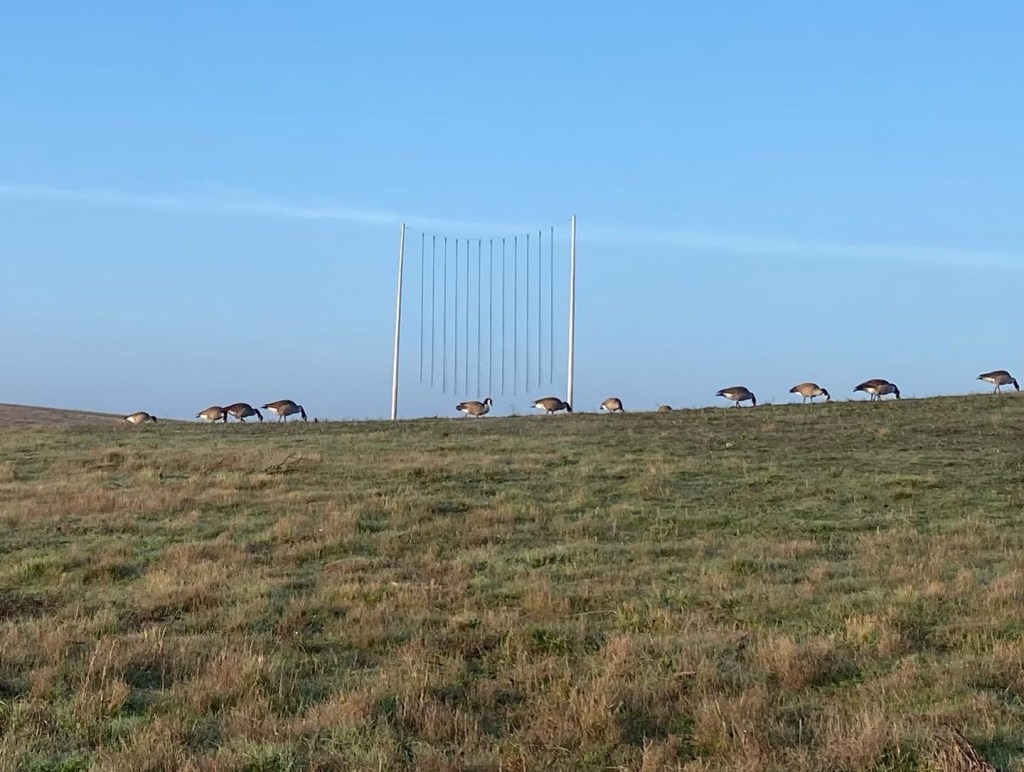 Byxbee Park, on the outskirts of Palo Alto, is on the shore of San Francisco Bay. It is constructed over a former landfill site and consists of trails along the shore line plus some manmade hills with public art which look like someone got hold of a job lot of telegraph poles and couldn’t think of anything better to do with them than plonk them on a hillside.