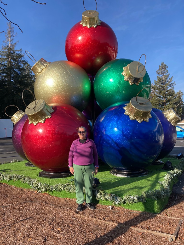 On the way home, I can’t resist stopping at some OTT Christmas decorations. Check out my baubles!