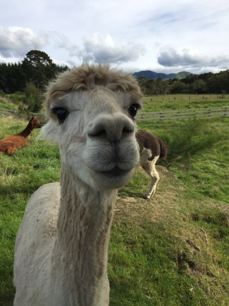 We continue to our ultimate destination, which is a friend’s small holding in the back of beyond some 60 miles north of Wellington. There are some sheep and lots of alpacas.
