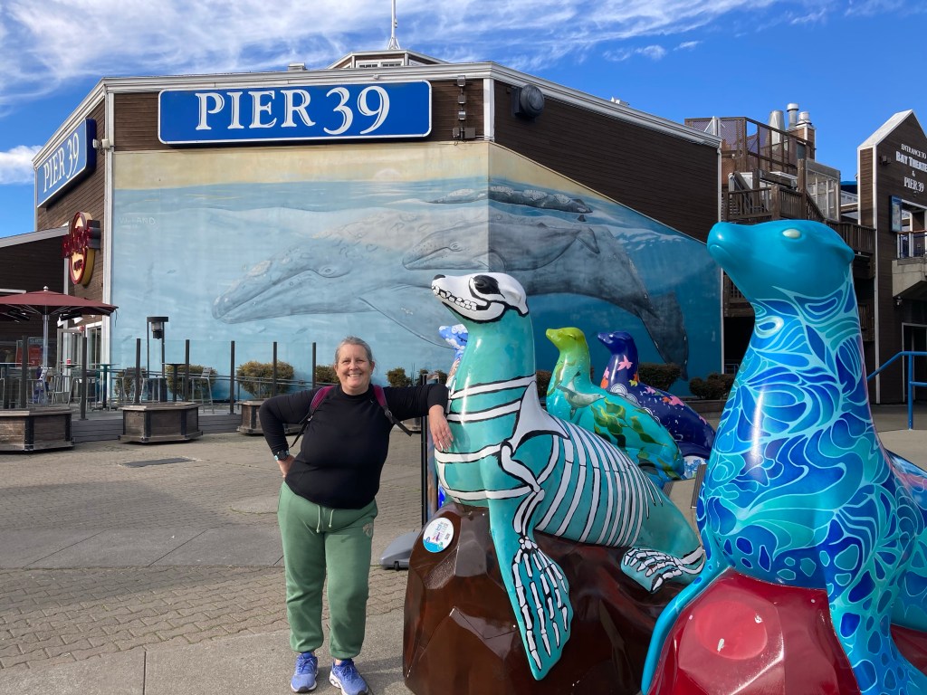 The Caltrain takes 70 minutes to reach San Francisco and terminates some way from our ultimate goal; the tourist Mecca of Pier 39 – even though l’ve visited San Francisco many times, I can’t resist a visit to this shop lined pier with its sea lion neighbours. So, we take a 3 mile walk along the San Francisco Bay Trail, past numerous piers.