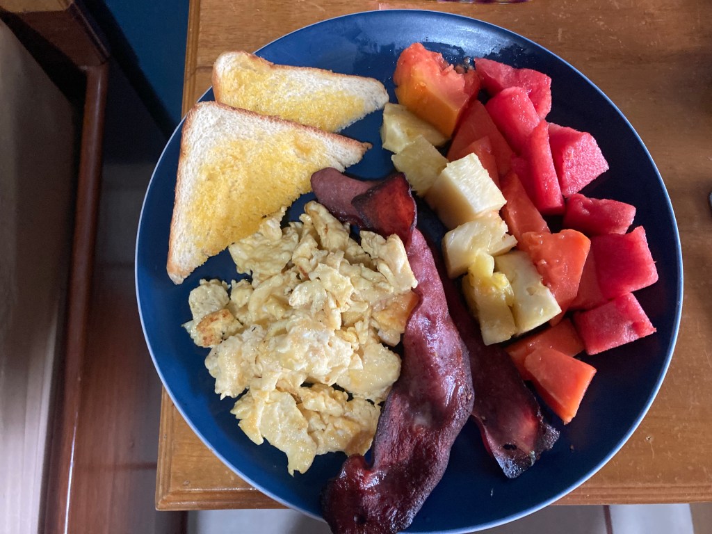 Then, it’s time for dinner (with 3 nights left in Costa Rica, the old man has bought a 1.8 kg sack of rice), FaceTime with family and bed. That’s my 7 days of isolation up; tomorrow I am allowed out – hooray!!!