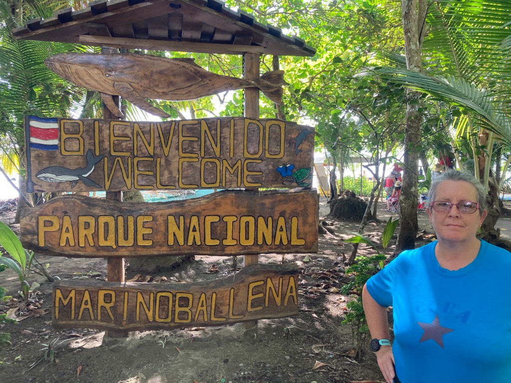 After checking in, I want to go for lunch (it’s 2 pm and I had a bowl of fruit 7 hours ago). But the old man insists on going for a walk first. We head to the beach, but as this forms part of the Marino Ballena National Park, we must pay $14 to enter.