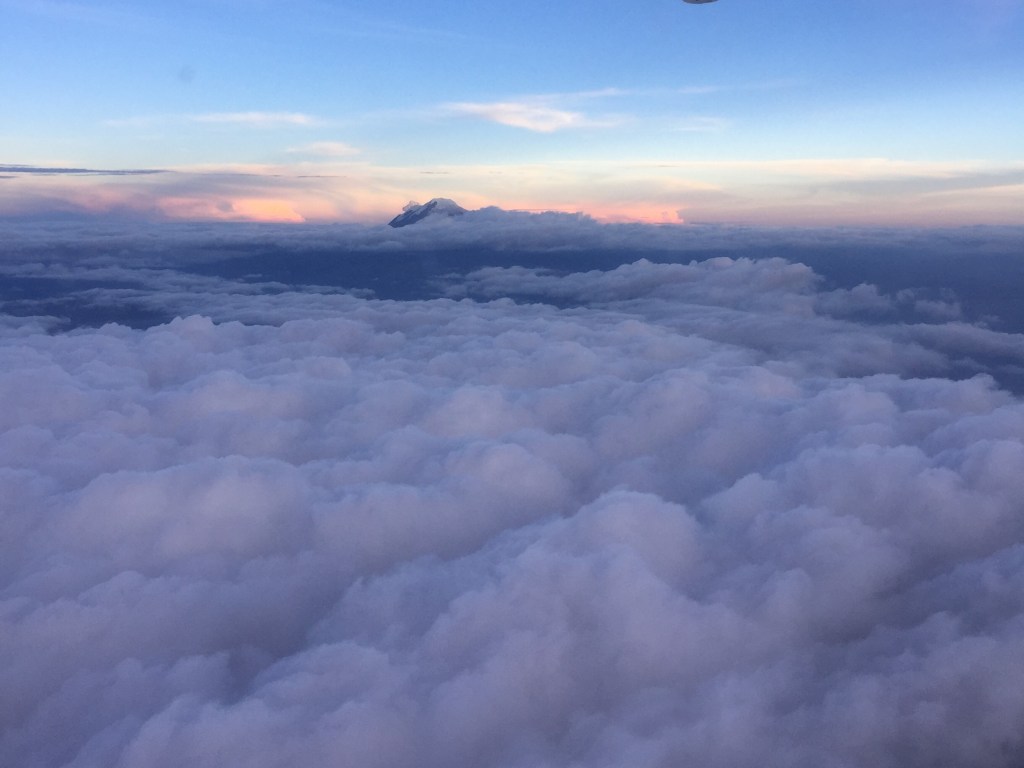 The flight to Quito is quite spectacular as we skirt Cotopaxi Volcano as the sun begins to set.