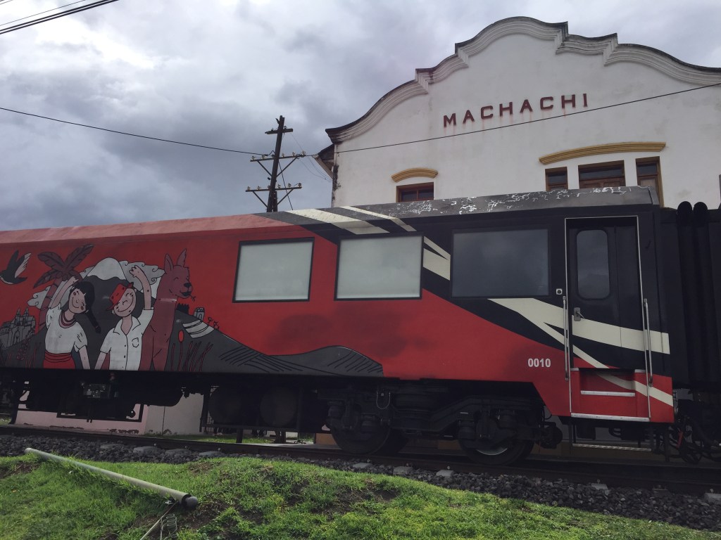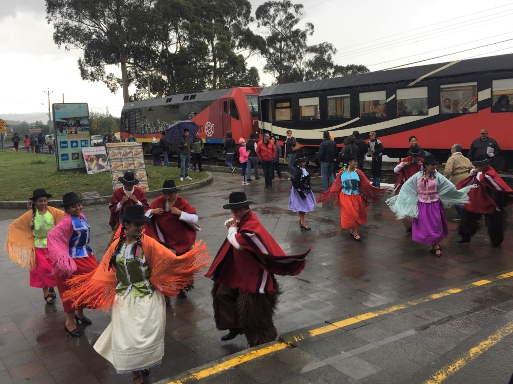 We stop for two hours at Machachi Station in the middle of nowhere. There’s the station, a café and a fancy ranch. It’s pouring with rain, soaking the poor dancers who are there to greet us. We have some lunch at the station, which leaves over an hour to kill aimlessly wandering round by the train, which finally departs 20 minutes behind schedule.